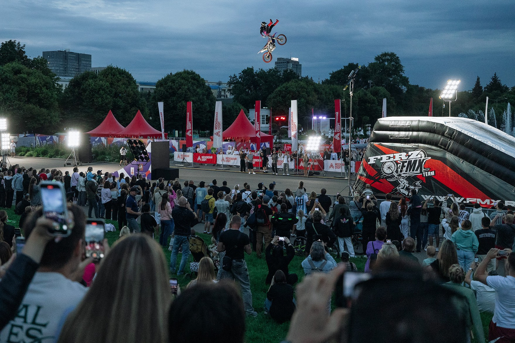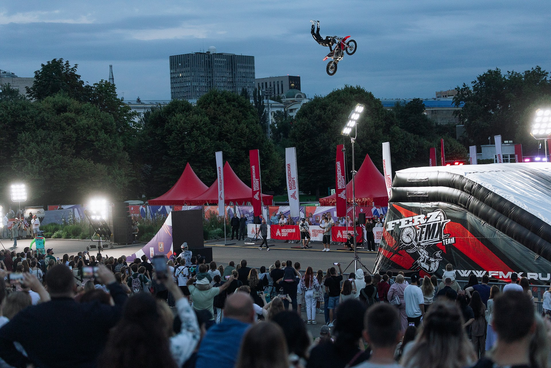 Репортажная съёмка фестиваля «Ночь Московского спорта» — масштабное событие с выступлениями, активностями и зрелищной атмосферой. Кадры передают энергию вечернего города и спортивный драйв.